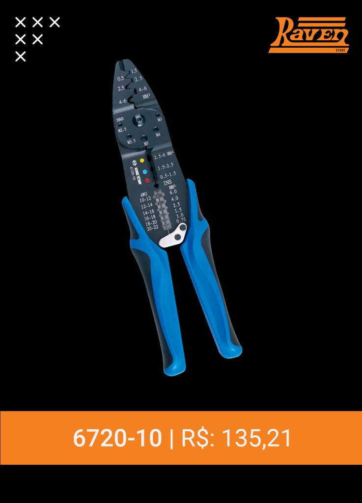 • Indicado para isolar e crimpar terminais, desencapar e cortar fios e pequenos parafusos